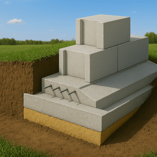 Такой подход позволяет реализовать качественное строительство блочного фундамента для дома, обеспечивая прочную основу под любые типы зданий. Стоимость установки блочного фундамента зависит от условий участка, объёма работ и типа блоков. Предлагаем проведение всех работ под ключ с гарантией и соблюдением сроков.